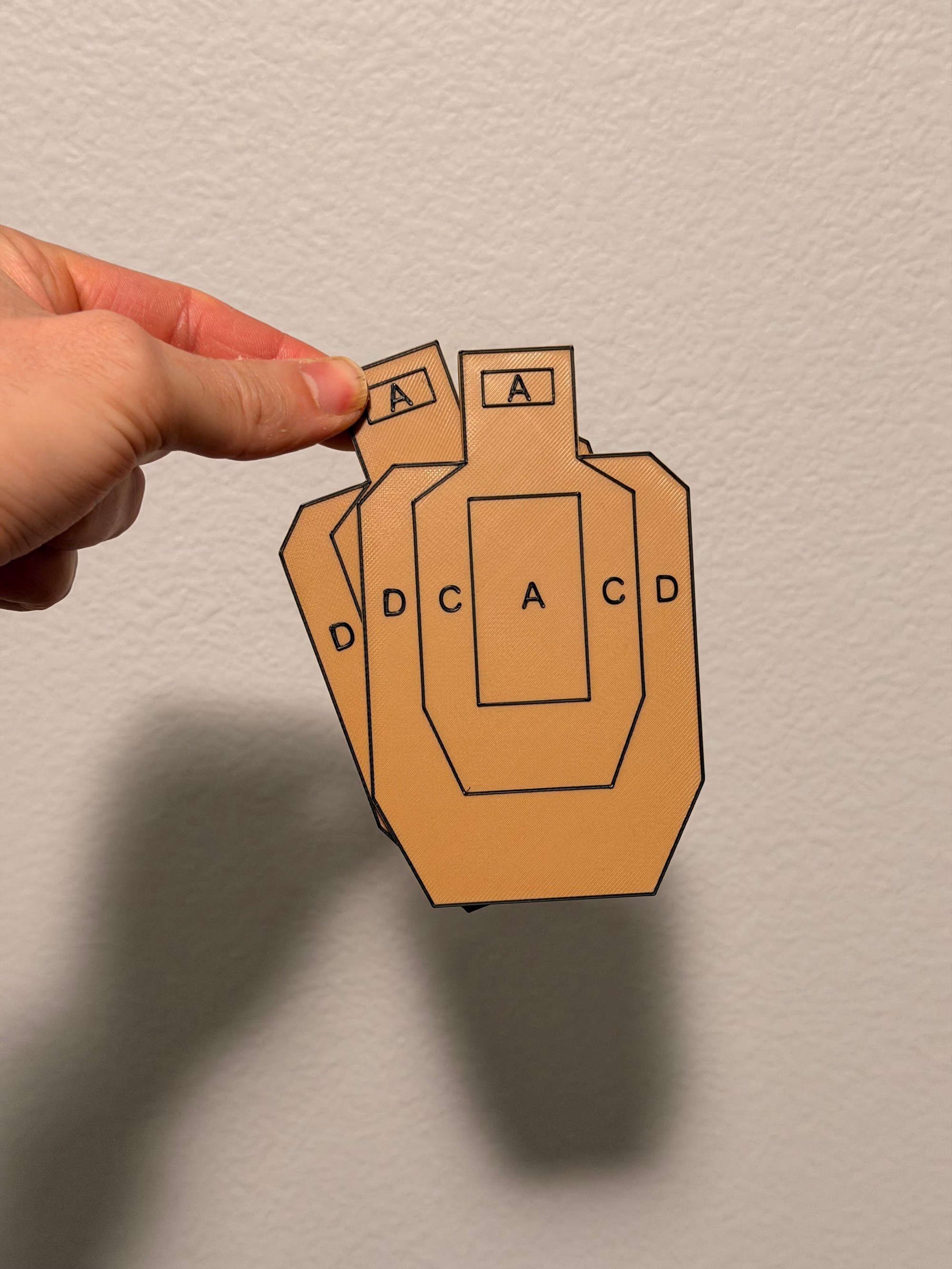 These are 1/6 scale USPSA targets. You can stick these things to anything magnetic! And they are stackable for any hostage style scenarios or whatever else you can come up with where the magnets line up. I've been sticking these to my refrigerator as well as angle irons on walls for all kinds of scenarios.